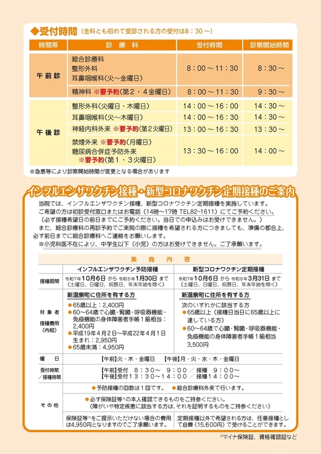 (初診・診察券がない方は8時30分より)